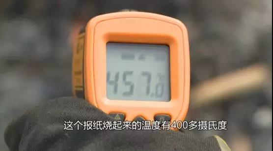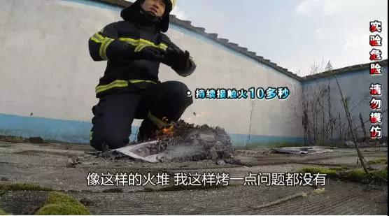 點(diǎn)燃報(bào)紙,燃燒的溫度是500度左右,大史穿著消防服,直接把手伸進(jìn)火里,感覺是很暖和,還挺舒服,手離開火堆馬上降溫。