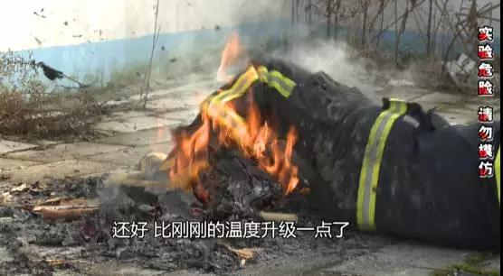 合格的消防服是有阻燃效果的,阻燃到什么程度?在什么情況下會(huì)被引燃呢?我們用一件現(xiàn)役消防員穿的、國家強(qiáng)制認(rèn)證過的合格消防服,來做一次暴力測試。