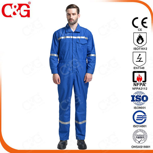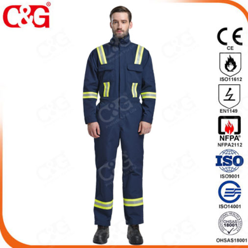 阻燃服采用阻燃面料,其面料中阻燃纖維使纖維的燃燒速度大大減慢,在火源移開(kāi)后馬上自行熄滅,而且燃燒部分迅速炭化而不產(chǎn)生熔融、滴落或穿洞,給人時(shí)間撤離燃燒現(xiàn)場(chǎng)或脫掉身上燃燒的衣服,減少或避免燒傷燙傷,達(dá)到保護(hù)的目的。