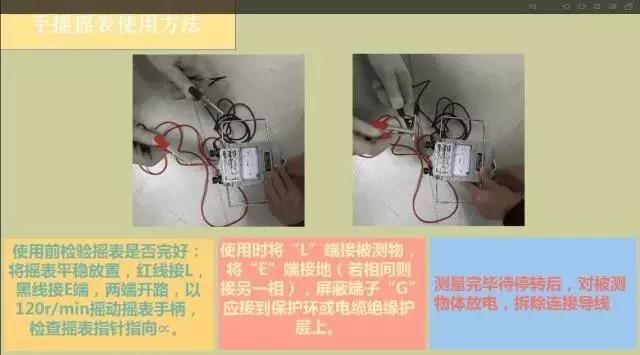 3、測(cè)量前要檢查搖表是否處于正常工作狀態(tài),將搖表進(jìn)行一次開路和短路試驗(yàn)。