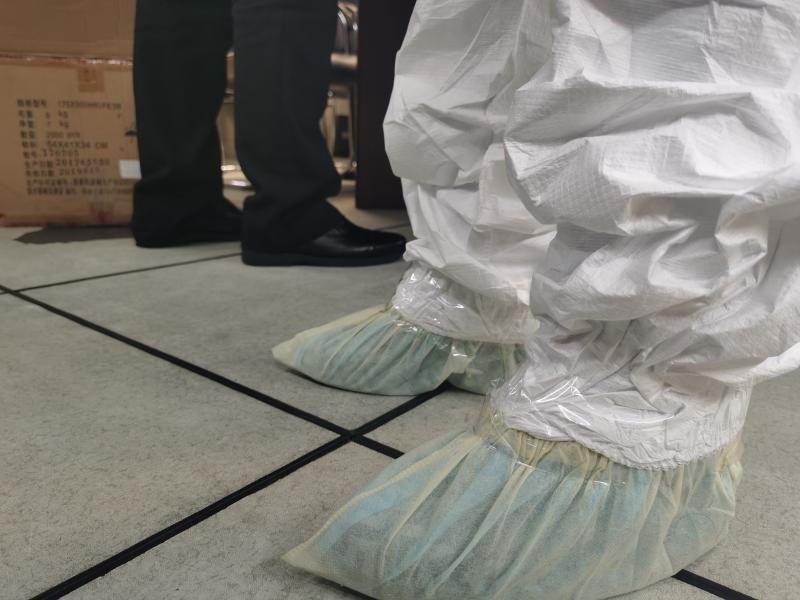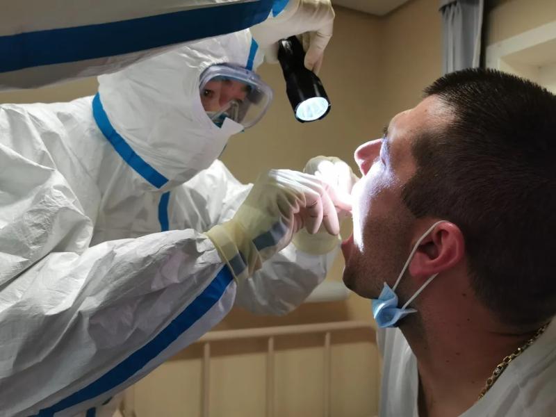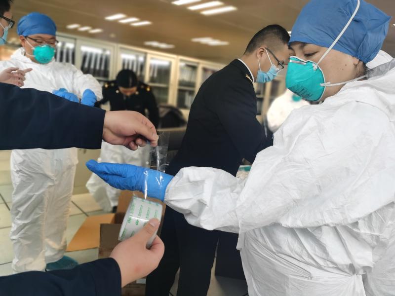 一線的衛(wèi)生檢疫人員,已經(jīng)忙到根本沒時(shí)間坐下。他們的輪班是這樣的——從天9時(shí)到21時(shí),回家睡一覺,第二天又來上班,從21時(shí)做到第三天的9時(shí)。他們從節(jié)前一直戰(zhàn)斗到現(xiàn)在,其中,有人取消了婚期,有人無(wú)法陪夫人分娩,也有人將兩個(gè)孩子單獨(dú)拋在家中。隔三差五,就有人忙到昏倒——他們穿著規(guī)定時(shí)效為4小時(shí)的防護(hù)服,但往往10小時(shí)都脫不下來,期間滴水不沾、粒米不進(jìn),也不上廁所。記者在現(xiàn)場(chǎng)看到,有檢疫關(guān)員們正在互相幫助改善防護(hù)服——沒有更高級(jí)別的膠條防護(hù)服,他們只能用玻璃膠布幫助同事將手腕處手套與防護(hù)服的連接處盡可能地封住。他們都很珍惜防護(hù)物資,專門有個(gè)物資小組,每天掌握庫(kù)存、統(tǒng)計(jì)現(xiàn)場(chǎng)使用量,再精準(zhǔn)地向上級(jí)申請(qǐng)。