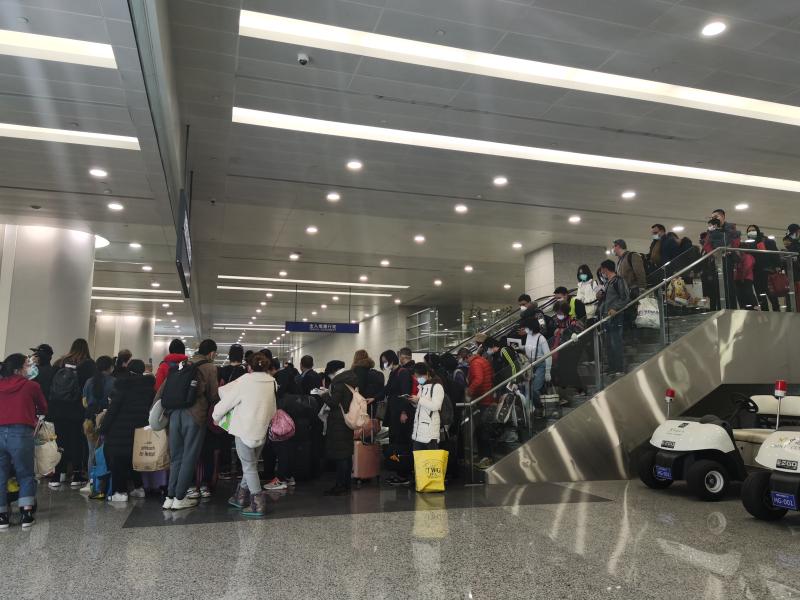 下午2時(shí)30分,記者看到,俄航某進(jìn)境航班旅客正在國(guó)際到達(dá)區(qū)域進(jìn)行健康申報(bào)、測(cè)溫等工作。旅客們從下飛機(jī)到完成各個(gè)排查流程,可能需要數(shù)個(gè)小時(shí)。而后續(xù)航班即便已經(jīng)抵達(dá),旅客或許也暫時(shí)無(wú)法下機(jī),他們要等到前道航班完成所有檢疫排查之后才能開啟進(jìn)境申報(bào)流程。記者看到,雖然旅客等候的時(shí)間很長(zhǎng),但他們多非常配合,而衛(wèi)生檢疫一線的海關(guān)關(guān)員面對(duì)長(zhǎng)長(zhǎng)的隊(duì)伍以及后續(xù)可能要排查到半夜的航班,其嚴(yán)防嚴(yán)控力度絲毫不松。非常時(shí)期,安全與便利,不應(yīng)有所調(diào)和。