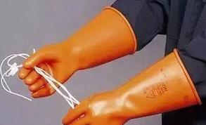 絕緣手套在使用前必須進行充氣檢驗,發(fā)現(xiàn)有任何破損則不能使用。外觀檢查時如發(fā)現(xiàn)有發(fā)粘、裂紋、破口(漏氣)、氣泡、發(fā)脆等損壞時禁止使用。