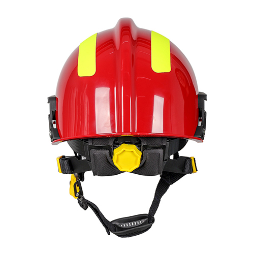 佩戴裝置:包括帽箍和系帶,耐高溫阻燃材質(zhì)。在盔體后沿下側(cè)設頭圍調(diào)節(jié)旋鈕;系帶可調(diào)節(jié)佩戴松緊,加裝帶孔透氣下頦托;插扣為快脫插扣;